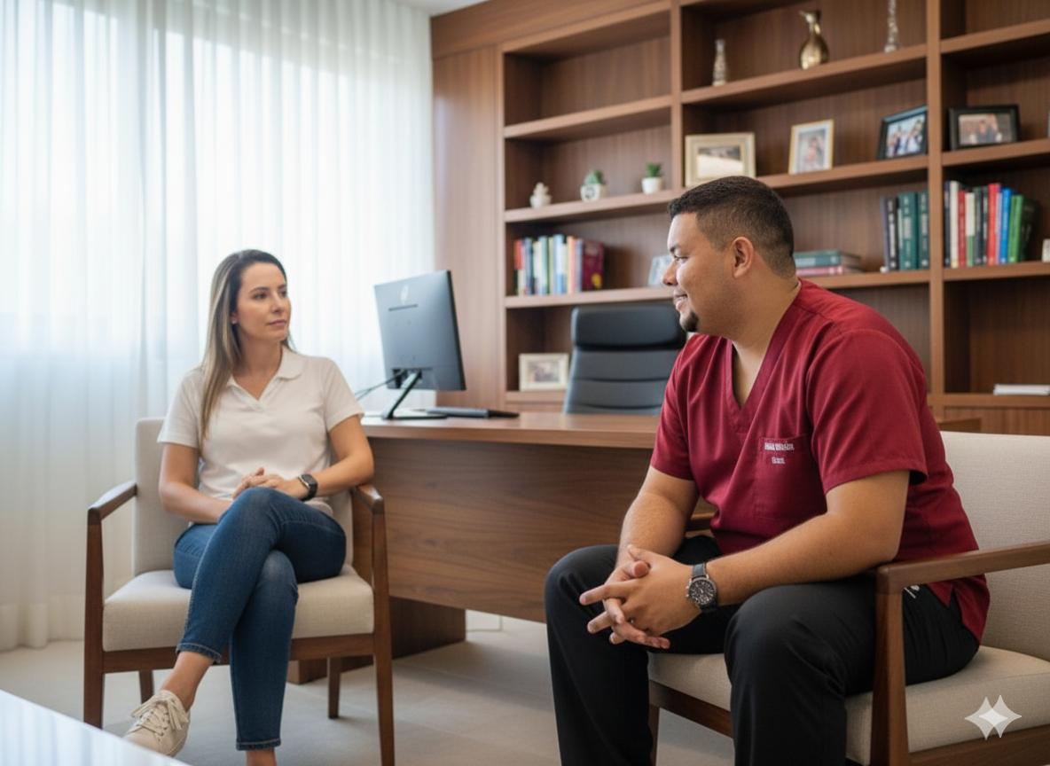 A primeira consulta é simples: basta entrar em contato pelo WhatsApp para escolher o melhor horário. No encontro inicial conversamos sobre suas necessidades, histórico e sintomas, para definir o tratamento mais adequado ao seu caso.